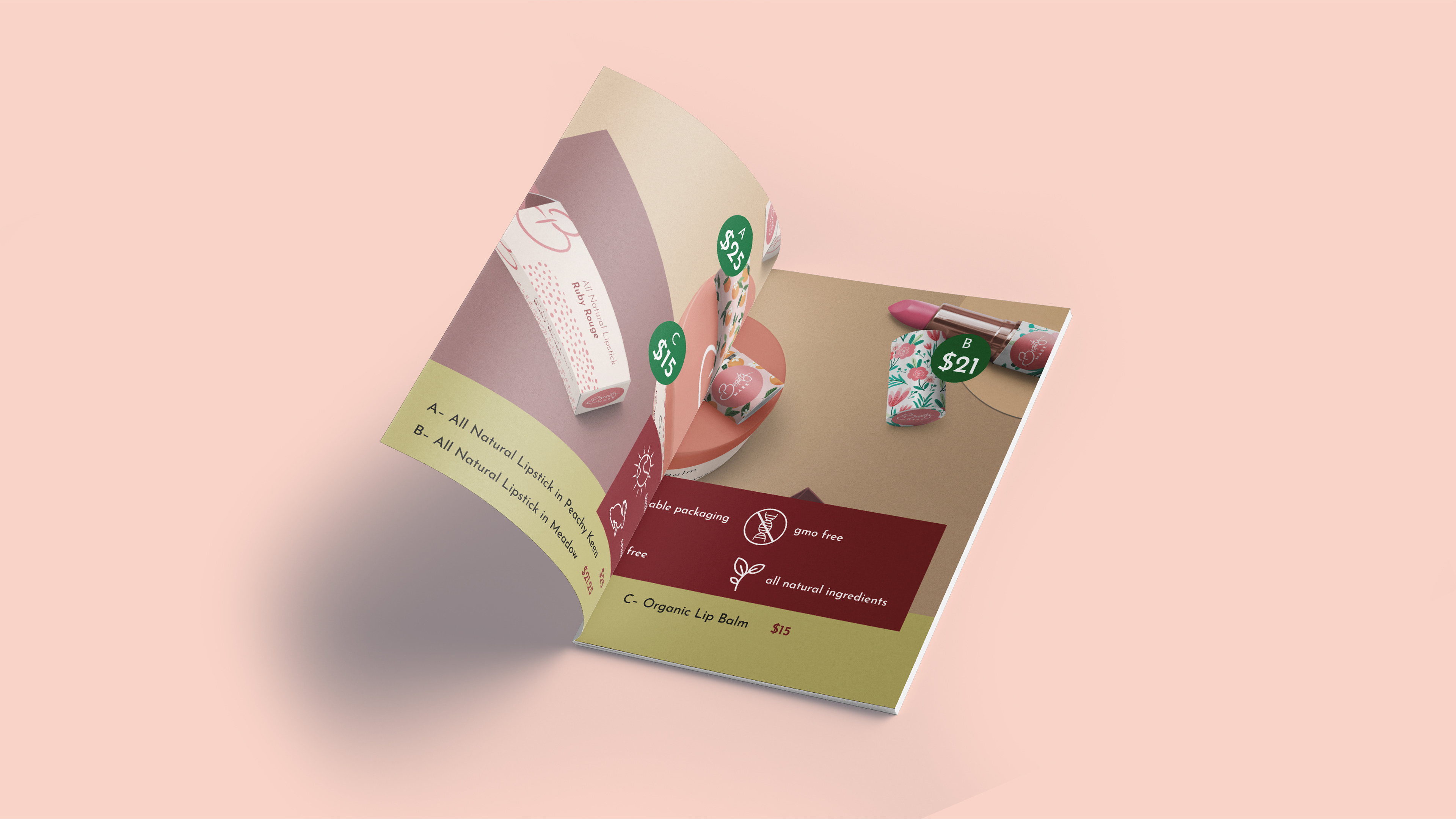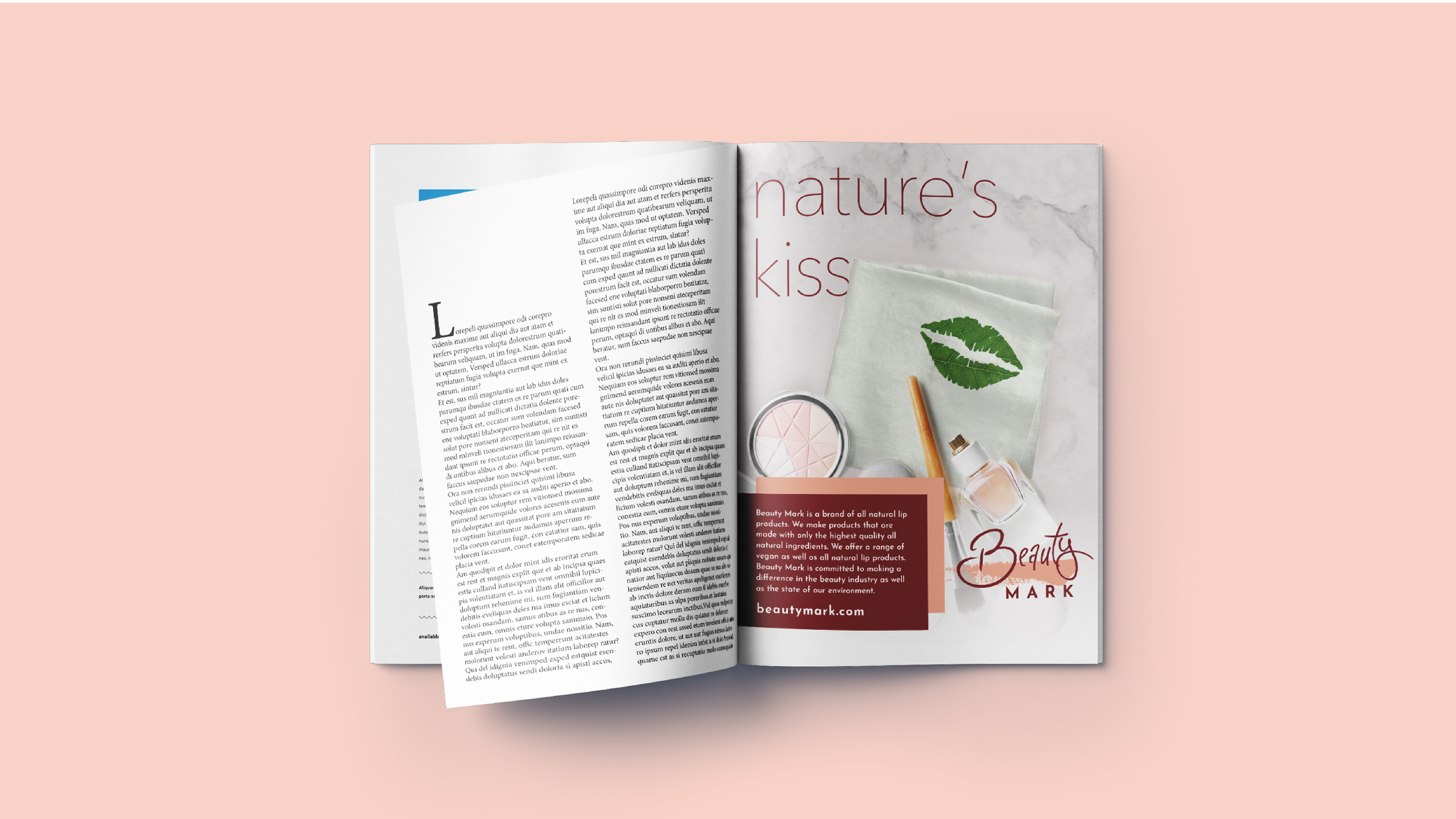Multi-faceted project for Beauty Mark, an all natural brand of lipsticks and lip products.