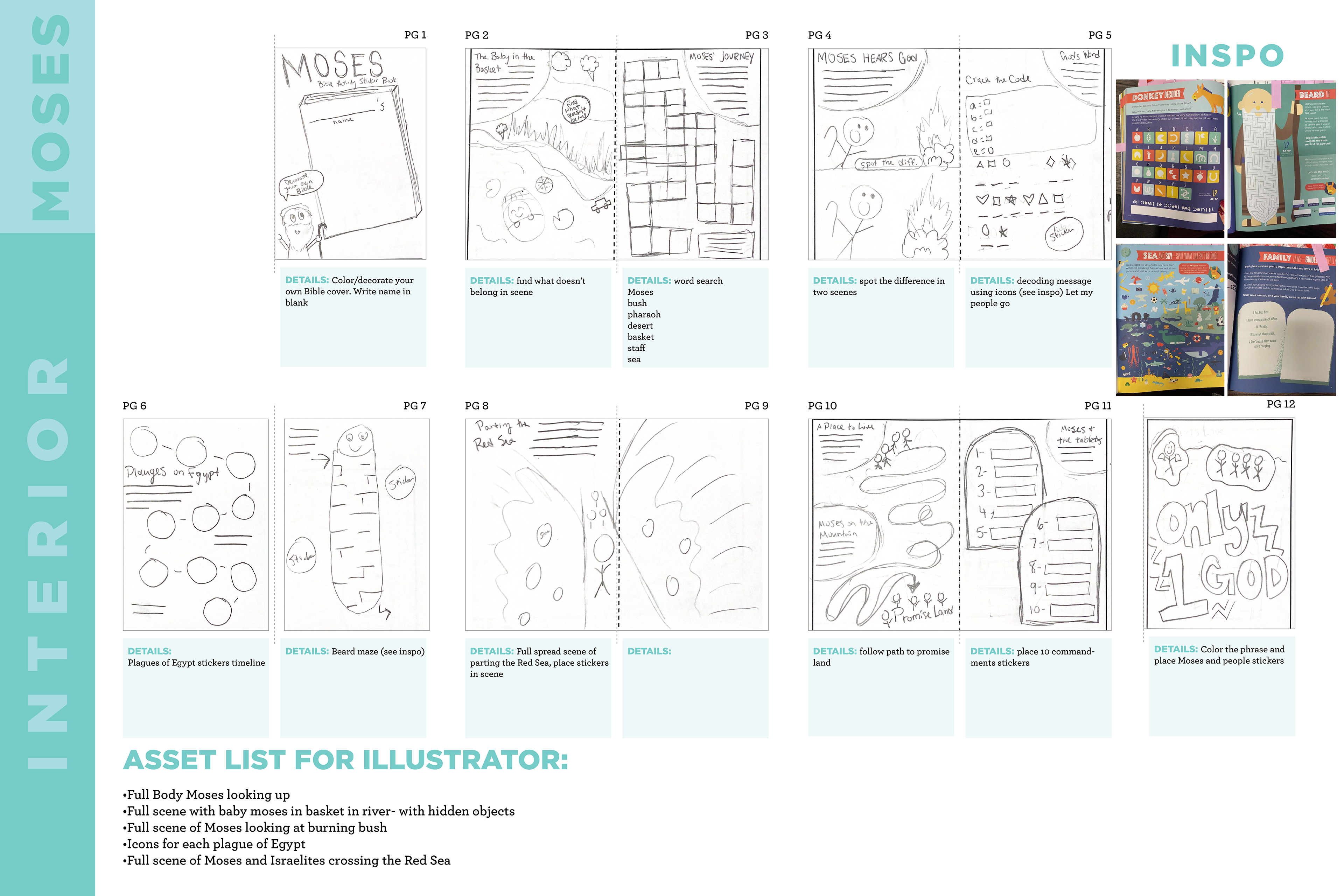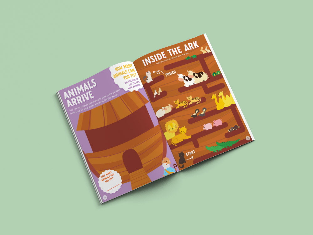 A set of 6 12-page activity sticker books. All interiors, covers, and stickers concepted and designed.