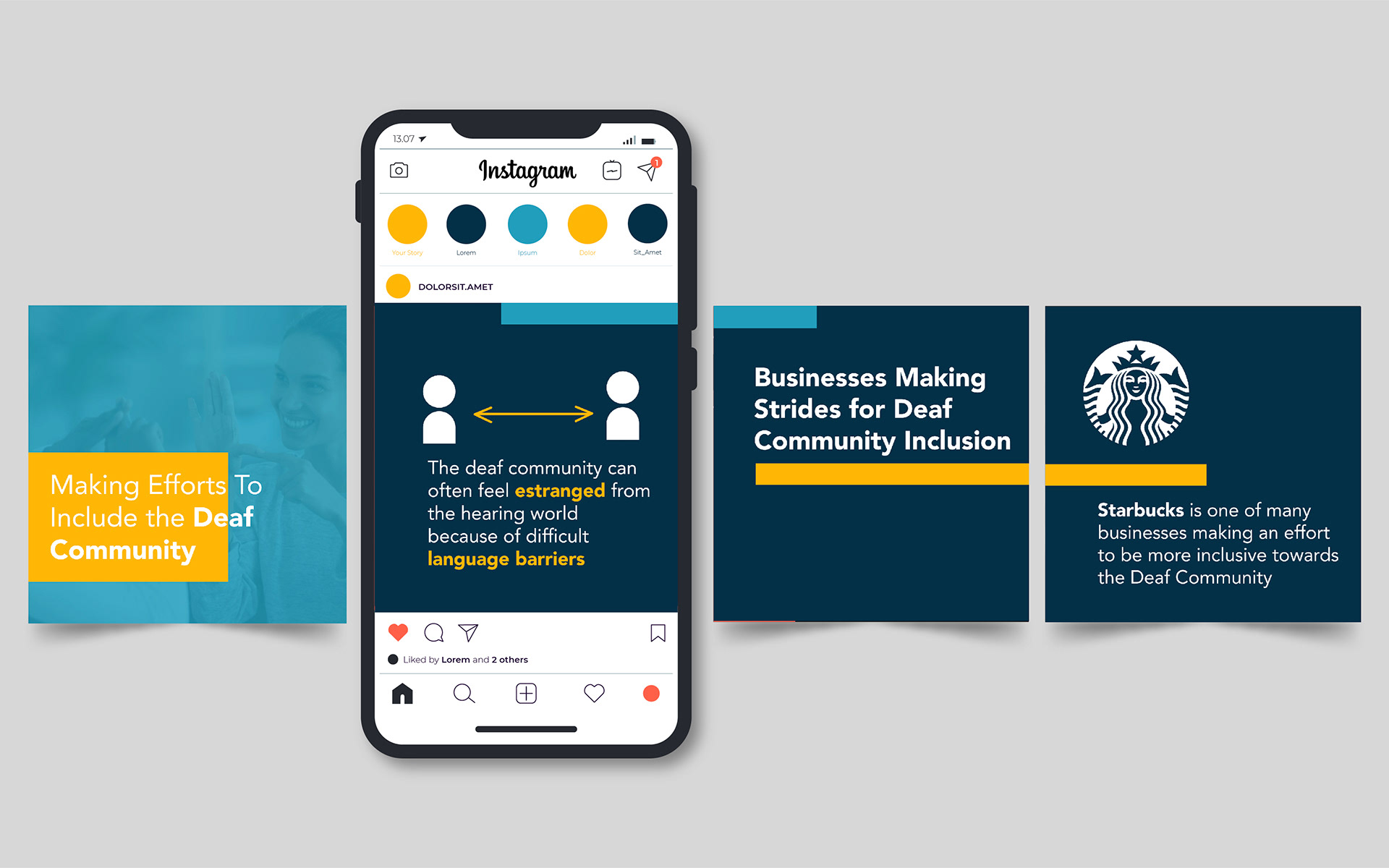 Three part campaign of Instagram carousels advocating for Deaf inclusivity.